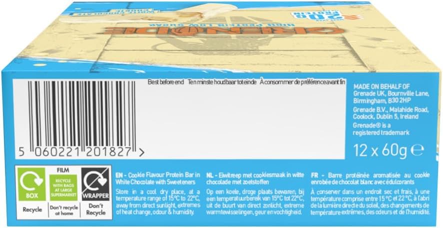 Grenade High Protein, Low Sugar Bar – White Chocolate Cookie, 12 x 60 g